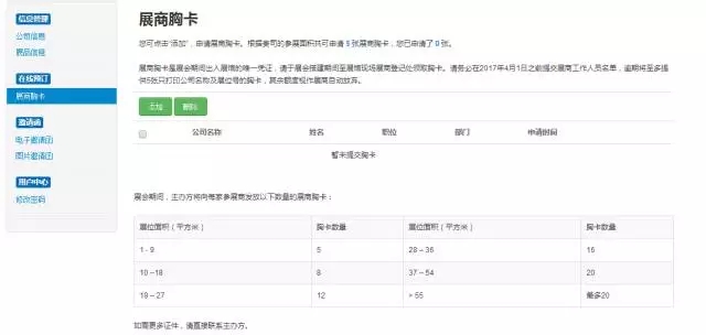 填寫展位工作人員信息,訂制專屬的展商胸卡,彰顯展會VIP身份。