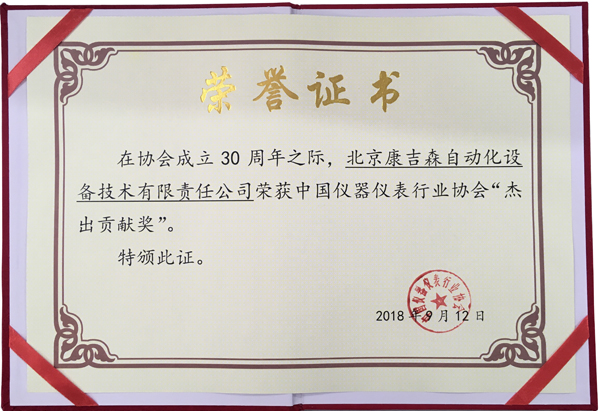 中國儀器儀表行業協會訊9月12日,2018年儀器儀表產業發展峰會在北京豐大國際酒店舉行,作為一年一度的行業盛會,吸引了眾多行業人士參加。當晚中國儀器儀表行業協會還舉辦了答謝晚宴暨協會成立30周年發展與回顧,并頒發了眾多獎項,而中國自動化集團的兩個全資子公司北京康吉森自動化設備技術有限責任公司與吳忠儀表有限責任公司,分別獲得了杰出貢獻獎和功勛會員獎。