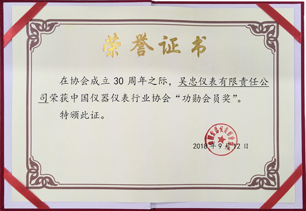 吳忠儀表有限責任公司獲得功勛會員獎