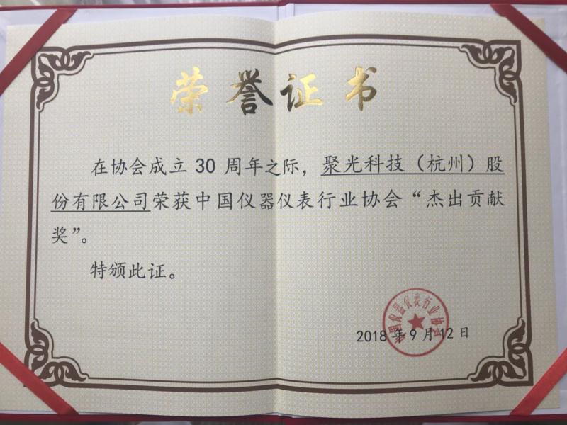 聚光科技(杭州)股份有限公司榮獲中國儀器儀表行業(yè)協(xié)會杰出貢獻(xiàn)獎