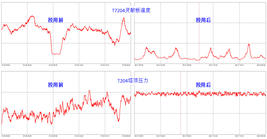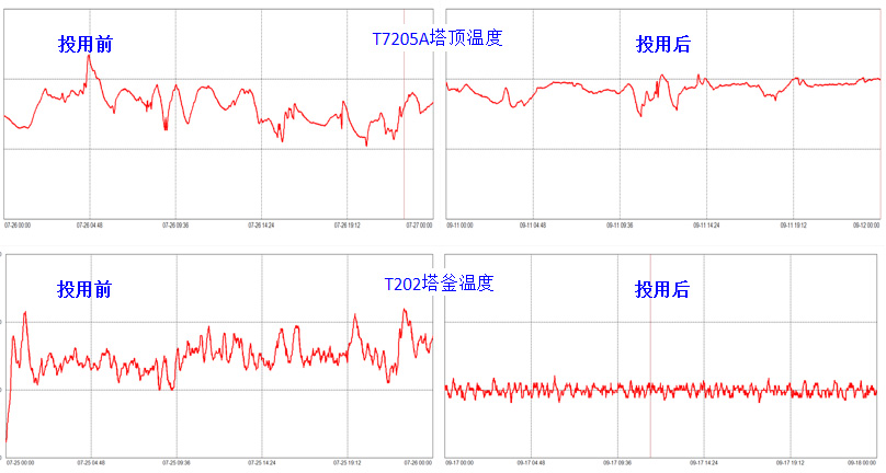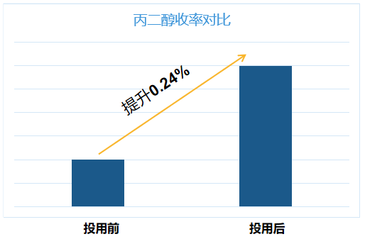 二甲酯裝置先進控制系統投用后,蒸汽單耗下降0.63%,二甲酯收率提升0.84%,丙二醇收率提升0.24%。