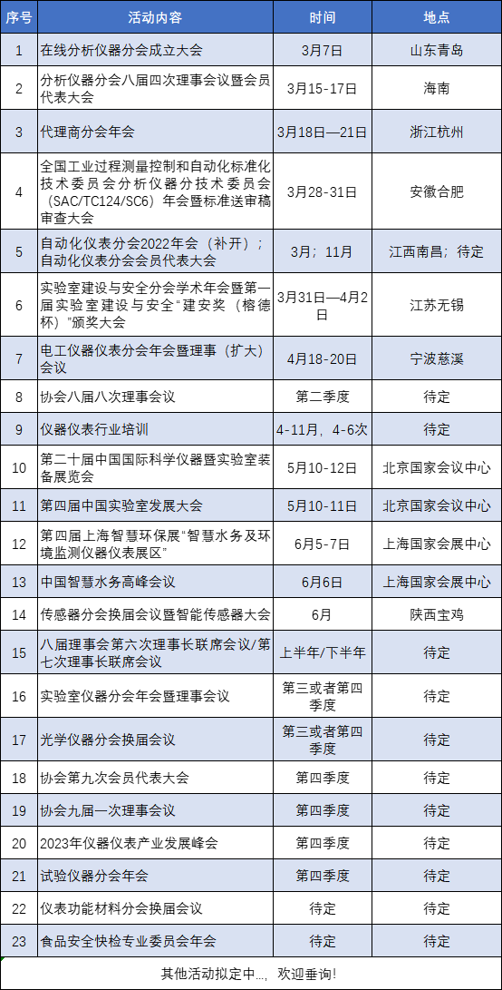 中國儀器儀表行業(yè)協(xié)會2023年度主要活動安排