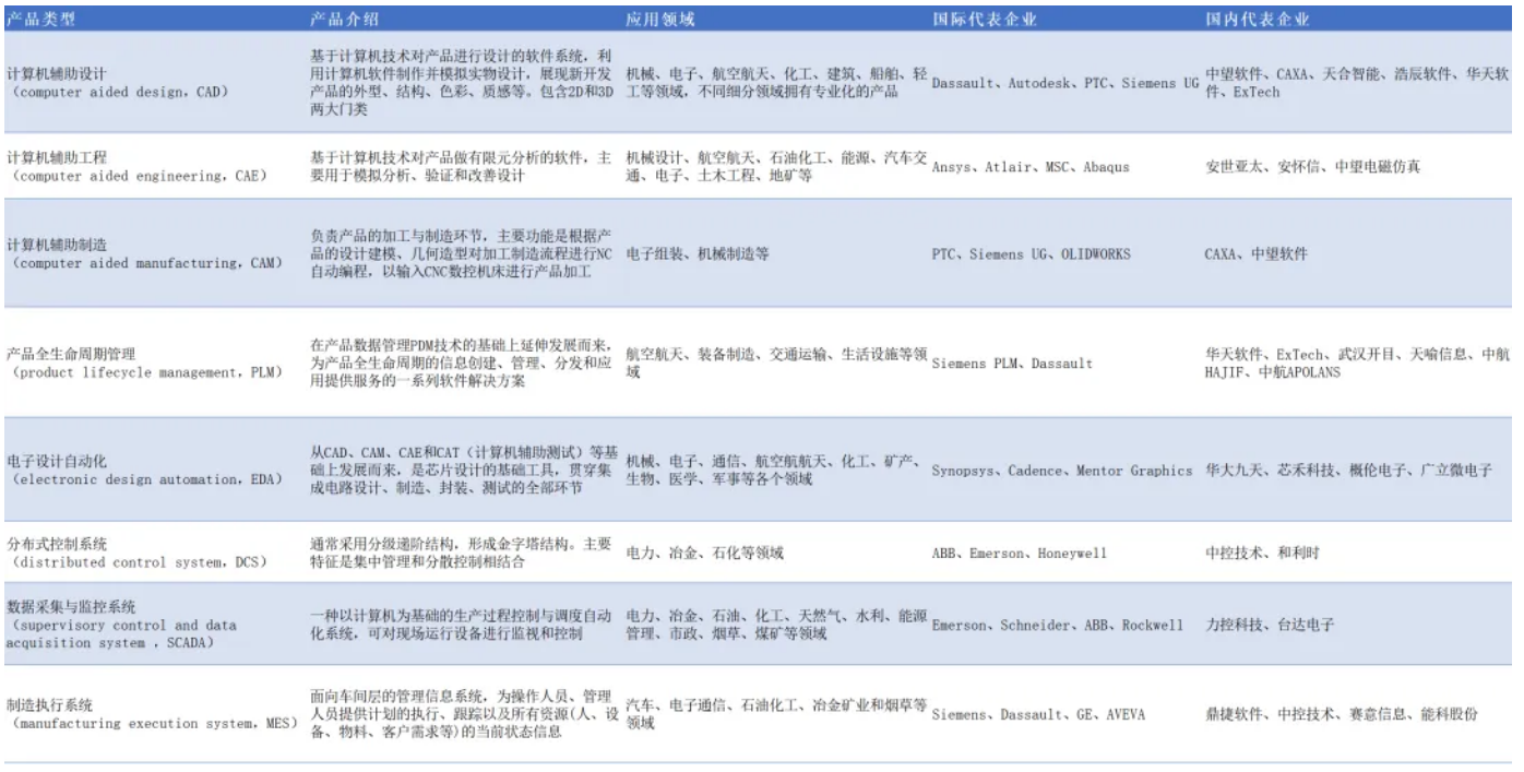 主要核心工業(yè)軟件產(chǎn)品及代表性企業(yè)