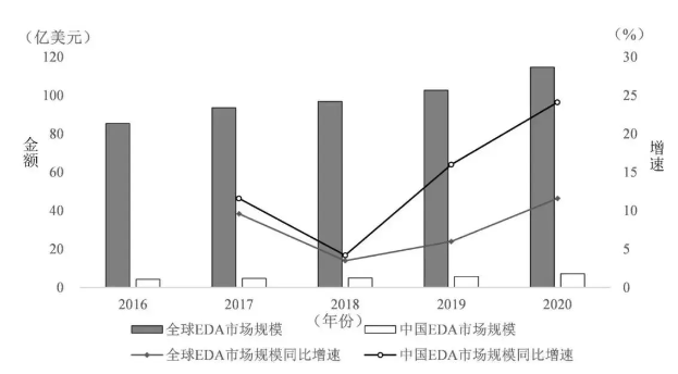 圖3 2016—2020年EDA市場規(guī)模及增速比較