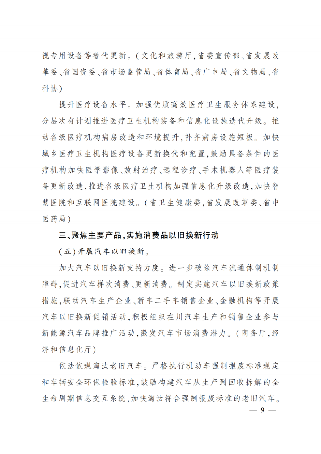 四川省人民政府關于印發《四川省推動大規模設備更新和消費品以舊換新實施方案》的通知