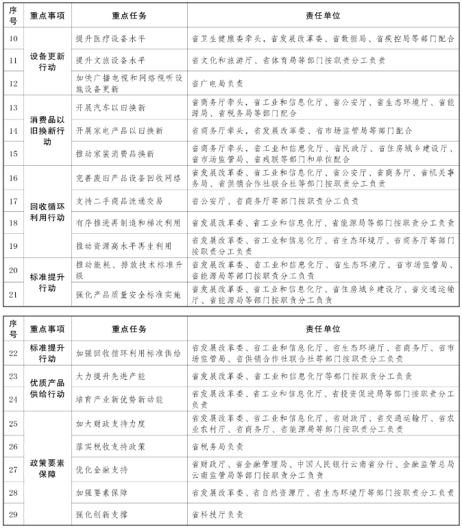 云南省人民政府關(guān)于印發(fā)《推動(dòng)大規(guī)模設(shè)備更新和消費(fèi)品以舊換新實(shí)施方案》的通知