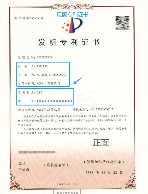 對于授權公告日在202461日之后(含當日)的專利,國家知識產權局頒發新版專利證書。新版專利證書沿用A4規格豎排版式,優化調整著錄事項布局。