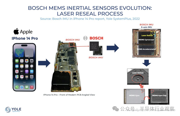 博世甚至推出了一項新的制造技術!其新的激光重新密封工藝顯著降低了壓力變化,從而最大限度地提高了 iPhone 14 Pro 內慣性傳感器的性能。雖然該工藝比以前的工藝貴三倍,但它允許將 MEMS 陀螺儀和加速度計集成到同一個芯片上,從而進一步縮小傳感器體積,更好地控制腔內真空度。