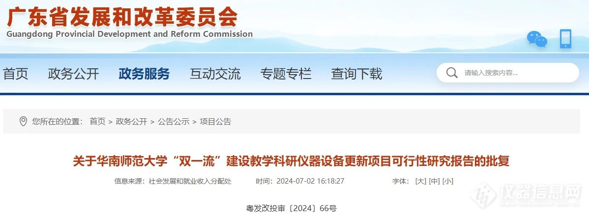 72日,廣東發展和改革委員會發布了《關于華南師范大學雙一流建設教學科研儀器設備更新項目可行性研究報告的批復》(以下簡稱《批復》)。