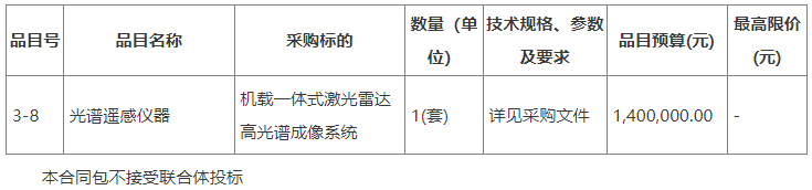 合同包3(機載一體式激光雷達高光譜成像系統):