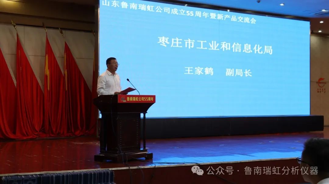 棗莊市工信局副局長王家鶴登臺致辭。魯南瑞虹儀器公司前身為技術密集性國營企業,是棗莊市具有代表性的高新技術企業,為國家色譜事業的發展較大貢獻。瑞虹公司要充分發揮科研優勢,秉持以科研創新、產品創新的發展戰略方針,加大科研力度,打造魯南地區特色高新技術產業,擴規模、提質量、增效益,成為我們山東分析儀器領軍企業。
