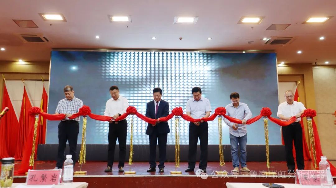 隨后活動進入新產品發布環節,首先棗莊市工信局副局長王家鶴、中國儀器儀表行業協會分析儀器分會秘書長曾偉、中國科學院空天信息創新研究院研究員孫建海、山東化學化工學會秘書長劉寶勝、公司董事長孔繁巖、公司副總經理付桂華共同為新儀器進行剪彩。