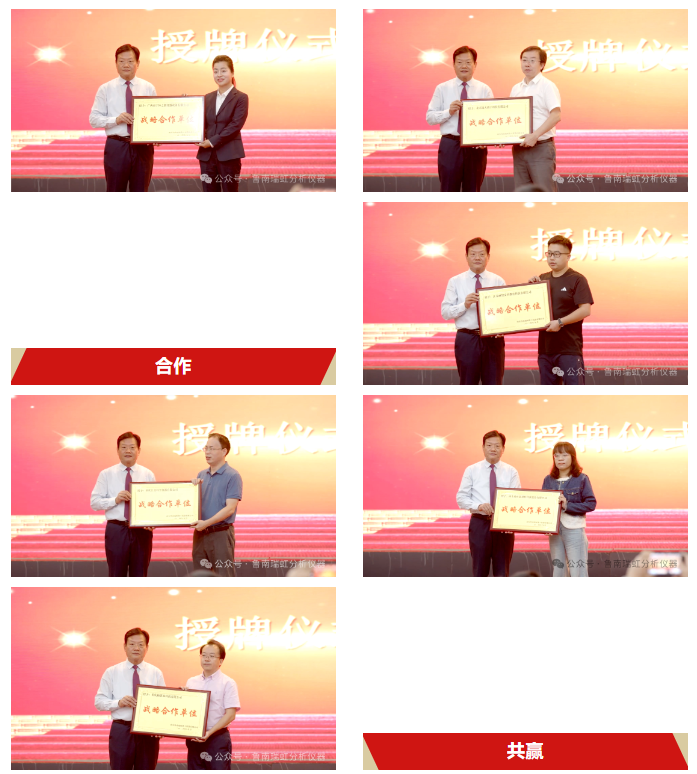 隨后活動進入戰略合作單位授牌儀式。我公司與山東尚正新材料科技股份有限公司、廣西南寧恒之創儀器設備有限公司、重慶帕萊森科技有限公司、重慶匯美科學儀器有限公司、江蘇麗智安科教育科技有限公司、北京銳天駿宇科技有限公司建立戰略合作關系,共同為國產色譜儀器的發展添磚加瓦。