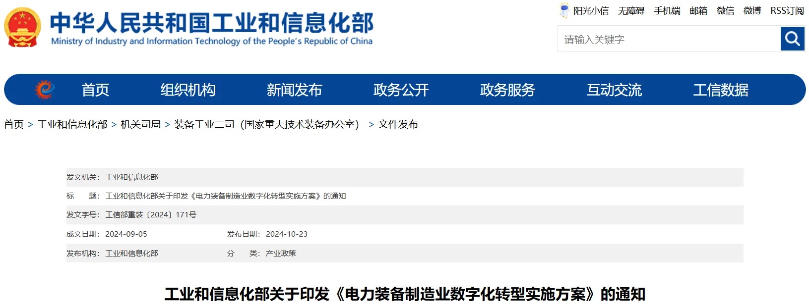 工業(yè)和信息化部關(guān)于印發(fā)《電力裝備制造業(yè)數(shù)字化轉(zhuǎn)型實(shí)施方案》的通知
