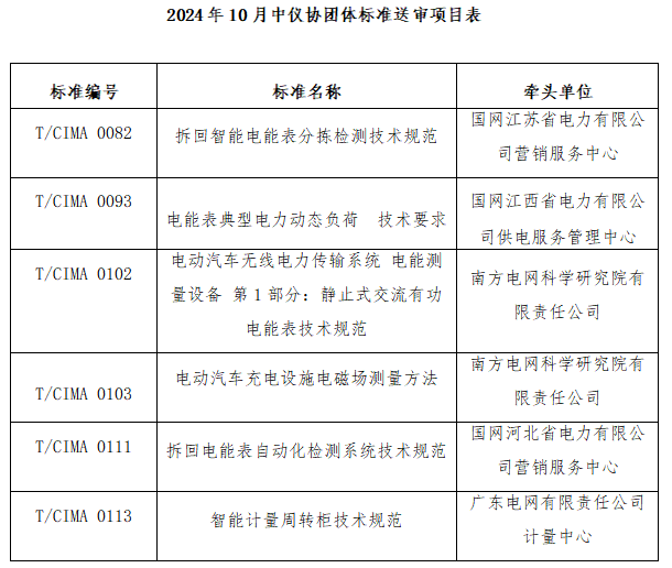 2024年10月 24-25日,中國儀器儀表行業(yè)協(xié)會(huì)(以下簡稱“協(xié)會(huì)”) 以視頻會(huì)議形式組織召開了《電能表典型電力動(dòng)態(tài)負(fù)荷 技術(shù)要求》等6項(xiàng)團(tuán)體標(biāo)準(zhǔn)(項(xiàng)目信息詳見附表)送審稿審查會(huì)。來自國網(wǎng)山東省電力公司電力科學(xué)研究院、廣東電網(wǎng)有限責(zé)任公司計(jì)量中心、中國電力科學(xué)研究院計(jì)量研究所、國網(wǎng)浙江省電力有限公司營銷服務(wù)中心、廣西電網(wǎng)計(jì)量中心、中國電力科學(xué)研究院有限公司、國網(wǎng)河南省電力公司營銷服務(wù)中心、國網(wǎng)山東省電力公司、黑龍江省電工儀器儀表工程技術(shù)研究中心有限公司的九位專家組成審查組,國網(wǎng)山東省電力公司電力科學(xué)研究院的徐民教授級高工擔(dān)任組長。會(huì)議由協(xié)會(huì)副秘書長程紅主持。協(xié)會(huì)及電工儀表分會(huì)的團(tuán)體標(biāo)準(zhǔn)工作人員、標(biāo)準(zhǔn)主要起草人參加了本次會(huì)議。