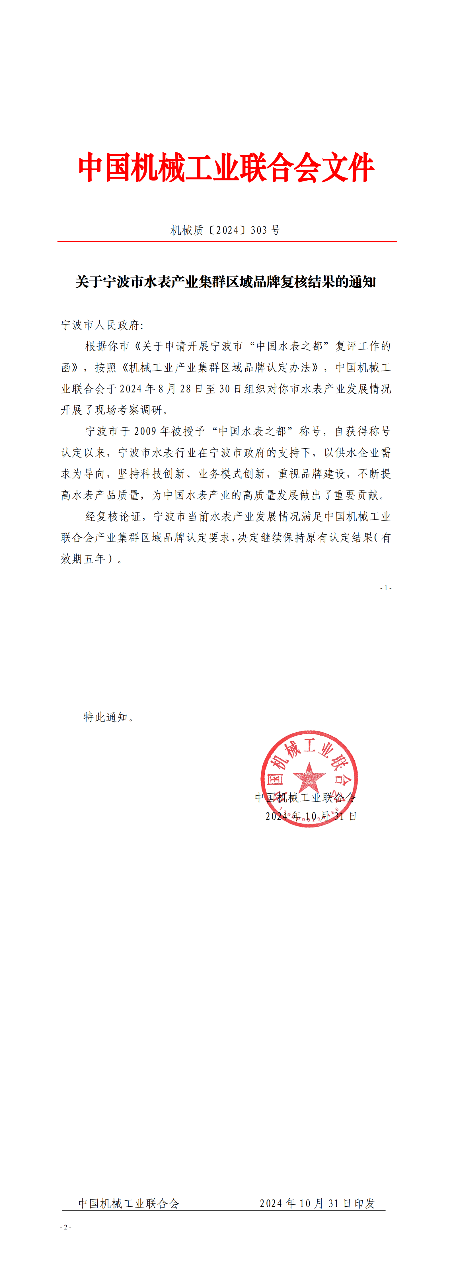 “中國水表之都”稱號再次落戶寧波