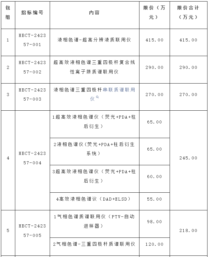 111日,中國政府采購網(wǎng)發(fā)布了石家莊海關(guān)技術(shù)中心2024年實驗室儀器設(shè)備更新項目公開招標(biāo)公告,項目預(yù)算金額2397萬元,采購液相色譜-超高分辨液質(zhì)聯(lián)用儀、高效液相色譜議、氣相色譜-三重四極桿質(zhì)譜聯(lián)用儀、原子吸收分光光度計等儀器設(shè)備。