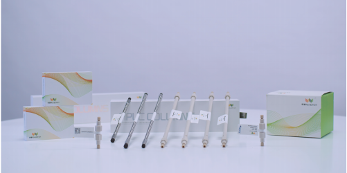 (1)色譜柱:色譜柱作為液相色譜的關鍵部件,是色譜系統的心臟。產研院現已攻克色譜柱關鍵共性技術,研發出應用于中藥、防腐劑等十多個領域的專用色譜柱。該系列色譜柱采用雜質金屬含量低于10ppm的球形全多孔硅膠為基質,并通過先進的表面鍵合技術和封端制造工藝,確保了色譜柱的高柱效,高機械強度和高性能優勢。同時,該系列色譜柱可提供豐富的鍵合固定相選擇,能夠廣泛覆蓋不同選擇性的需求,無論是酸性、堿性還是中性化合物的分析,都能獲得清晰的峰型和優異的批次間重現性。目前該系列產品部分已實現從研發、生產、技術支持全過程國產化。