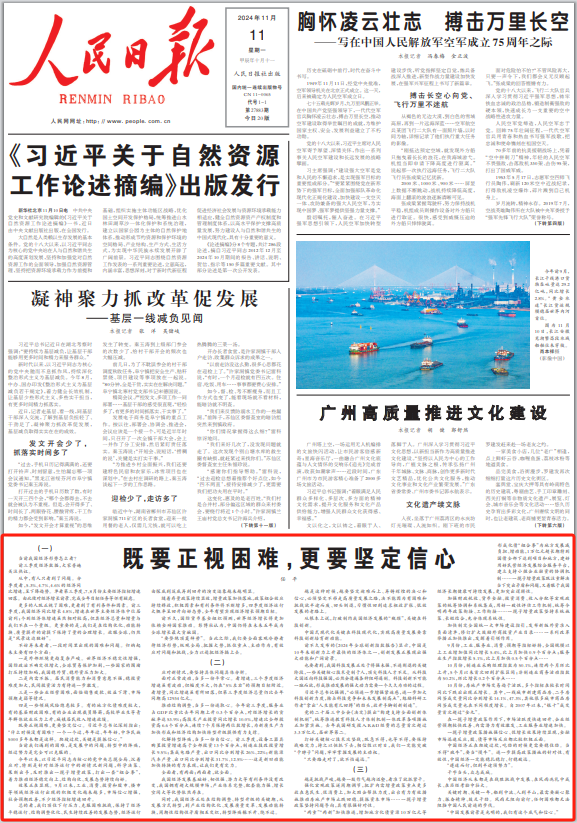當前我們遇到的困難,是發展中的問題、轉型中的陣痛,經過努力是完全可以克服的。