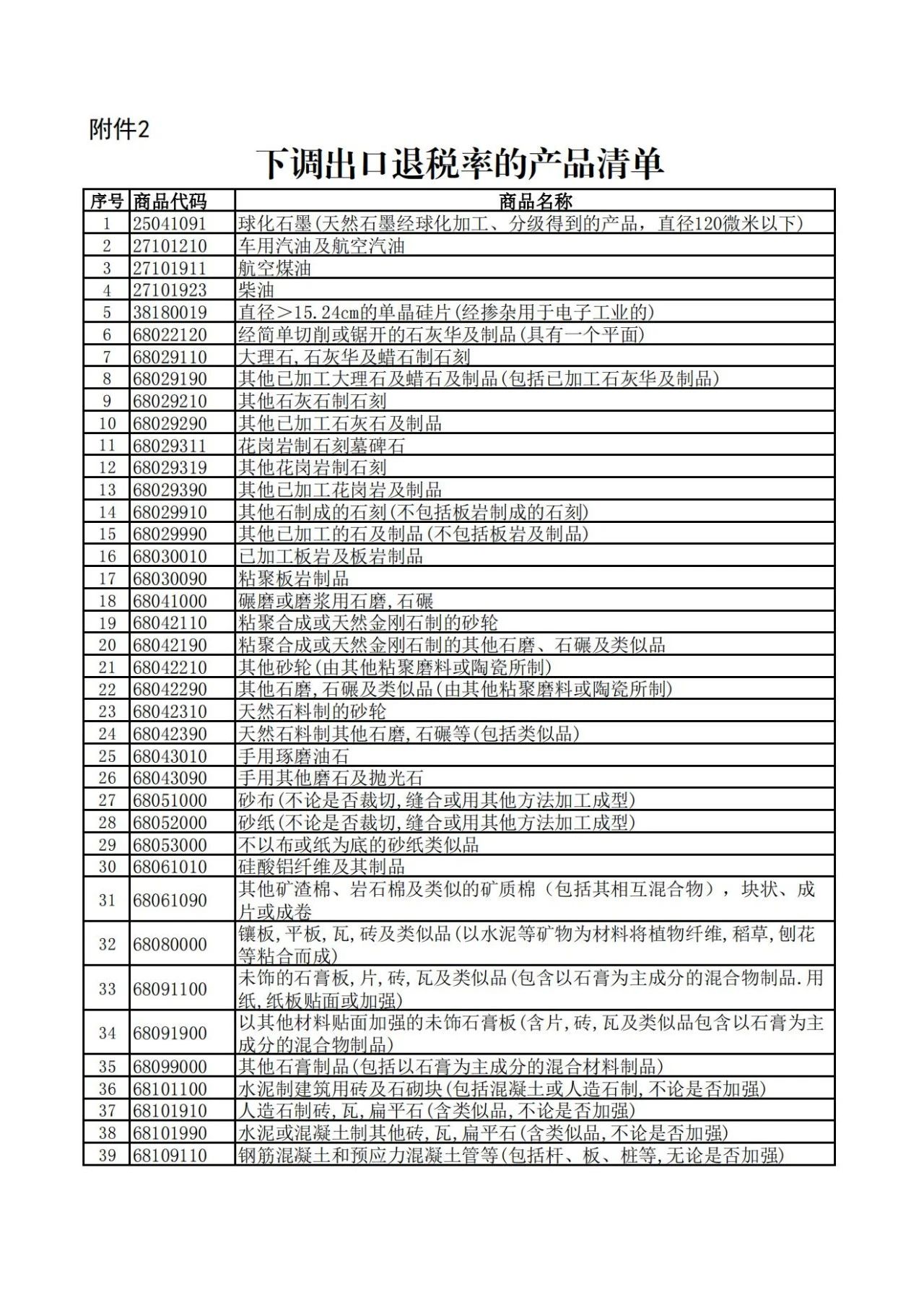 二、將部分成品油、光伏、電池、部分非金屬礦物制品的出口退稅率由13%下調至9%
