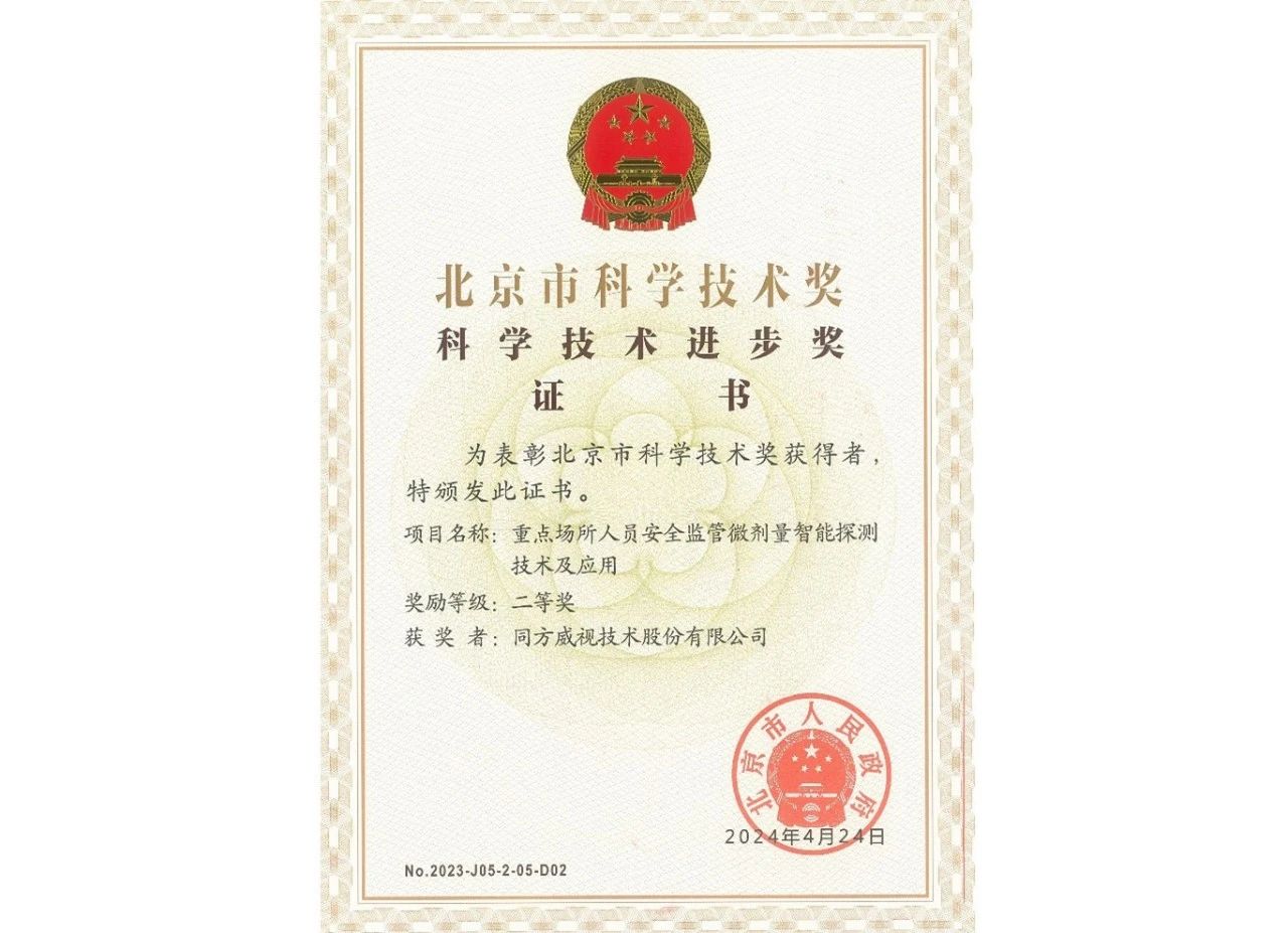 20241119日上午,北京市人民政府召開全市科技大會暨科學技術獎勵大會。同方威視和清華大學共同申報的面向重點場所安全監管的新型探測技術及應用項目榮獲2023年北京市科學技術進步獎二等獎。