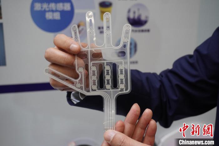 在河南鄭州舉行的2024傳感器大會上,工作人員展示柔性壓力傳感器。