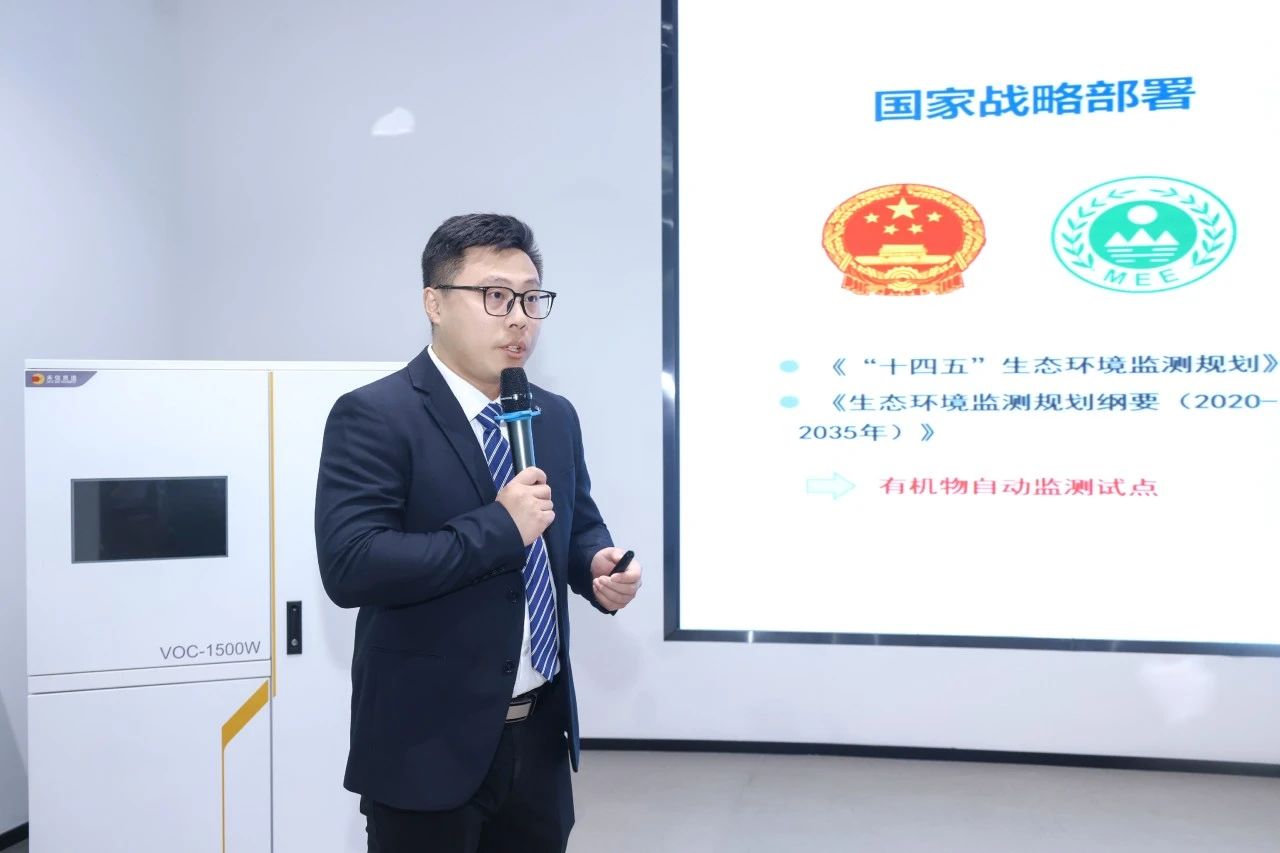 隨后,產品研發部經理譚國斌博士為大家詳細介紹了本次發布的2位家族成員。《“十四五”生態環境監測規劃》、《生態環境監測規劃綱要(2020-2035年)》等政策法規中都指出,國家將建設有機物自動監測試點;水質異味投訴頻發、GB5749-2022新增2項異味指標、GB/T 5750-2023引入新檢測方法;在這樣需求背景下,傳統分析檢測方法存在手工檢測時間滯后、數據量少等痛點。另外,我國食品和農產品農殘超標現狀不容樂觀,傳統快檢技術存在檢測項少、目標物單一、準確率低等局限性。農殘快速篩查面臨挑戰、急需高效篩查新技術。針對以上現狀與需求,禾信儀器集中力量研發推出了VOC-1500W水中異味和揮發性有機物在線自動監測系統和TAPI-TOF 1000M1快速篩查質譜移動檢測車兩款國內首創的新產品。在未來將助力水質檢測、食品安全、毒品檢測等更多領域。