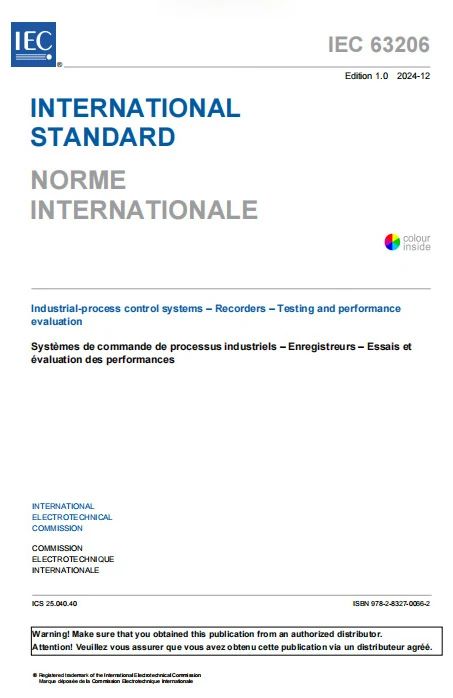 由自儀院主導(dǎo)制定的國際電工委員會(IEC)國際標(biāo)準(zhǔn)IEC 63206:2024《工業(yè)過程控制系統(tǒng) 記錄儀 試驗和性能評定》于2024年12月正式發(fā)布。