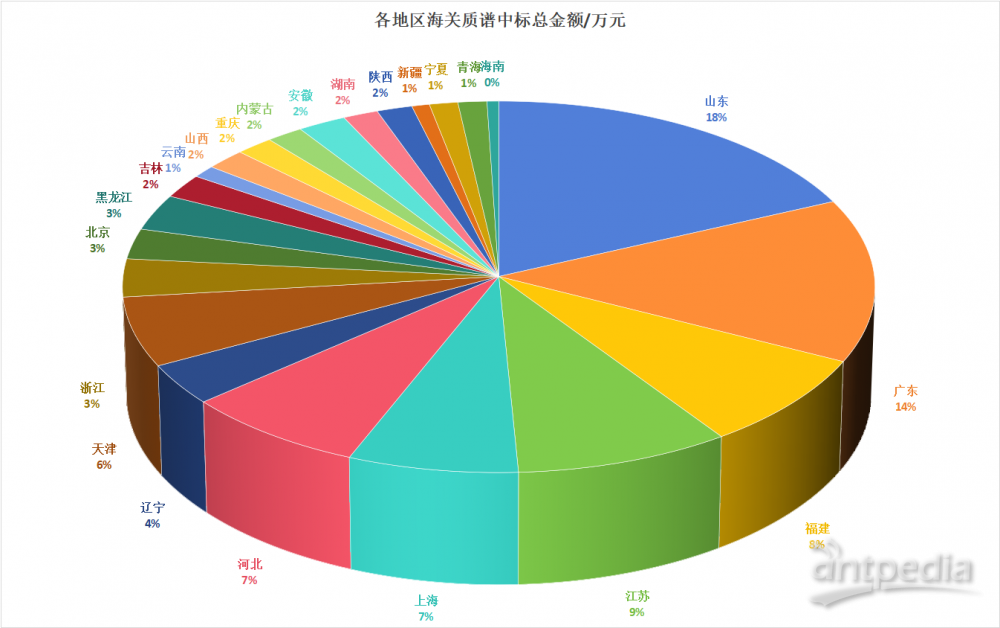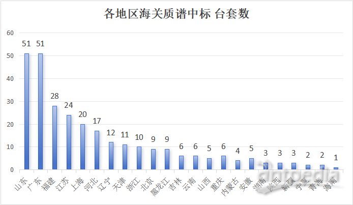 根據截至1230日的公開中標信息,不完全統計顯示,全國共有23個省、直轄市、自治區的72個海關相關單位參與了質譜儀的采購,共采購了288臺套質譜儀器,中標總金額達到5.2億元人民幣。