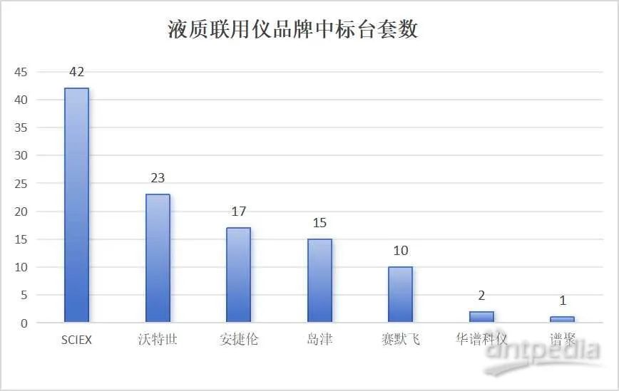 在液質聯用儀領域,各品牌的中標情況呈現出激烈的競爭態勢。SCIEX1.2億元的中標金額和42臺的中標數量獨占鰲頭,其中5500+型號的液質聯用儀中標了29臺。緊隨其后的是沃特世,中標了23臺,中標金額達到6737.1萬元,其中Xevo TQ-XS型號中標了11臺。安捷倫以3937.5萬元的中標金額和17臺的中標數量位列其中,6475型號中標了9臺。