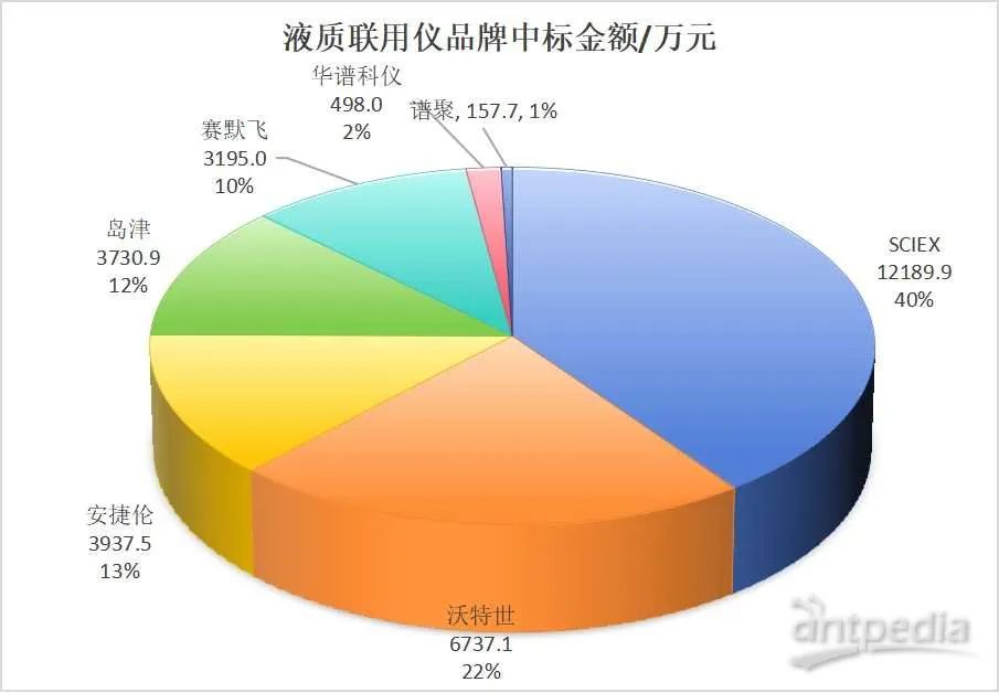 盡管氣質聯用儀在中標數量上略勝一籌,但從中標總金額來看,液質聯用儀以超過3億元的中標金額占據了質譜總中標金額的59%,顯示出其在高端市場的強大競爭力。氣質聯用儀的中標金額為1.4億元,占總金額的28%ICP MS的中標金額為6217.1萬元,MALDI-TOF質譜的中標金額為805.0萬元。