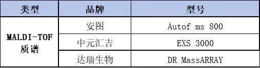 MALDI-TOF質譜可以用于微生物和核酸檢測,中標品牌有三家,安圖的Autof ms 800中標2臺,總金額410萬元。中元匯吉的EXS 3000也中標2臺,總金額為225萬元。達瑞生物DR MassARRY中標1臺,總金額170萬。