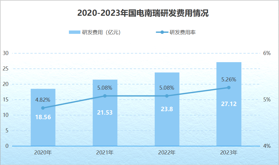 公司較強的技術實力離不開持續的研發投入。20202023年,國電南瑞研發費用率從4.82%提高到5.26%,超過了平高電氣等公司。