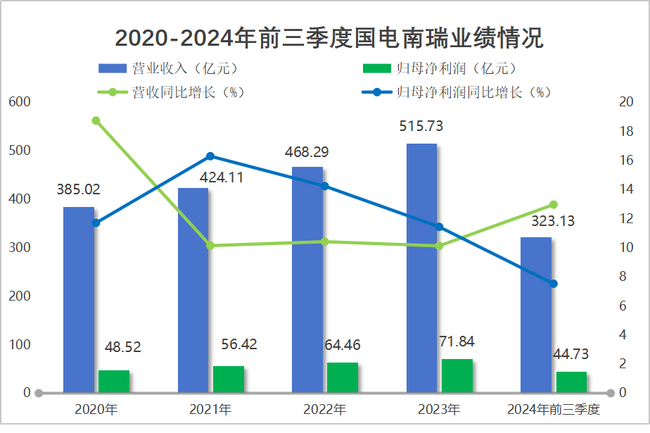 20202023年,國電南瑞營收從385.02億增長到515.73億,年復合增長率為10.23%;歸母凈利潤從48.52億增長到71.84億,年復合增長率為13.98%,業績增長穩健。