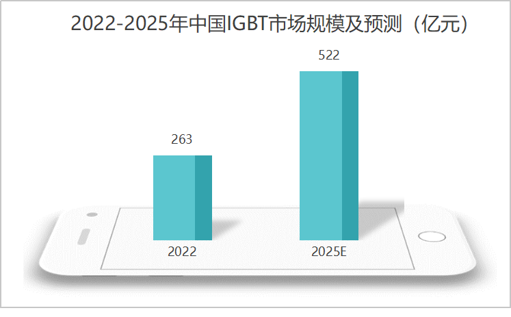 隨著國產替代的加速,預計20222025年中國IGBT市場規模有望從263億增長到522億,年復合增長率超過25%