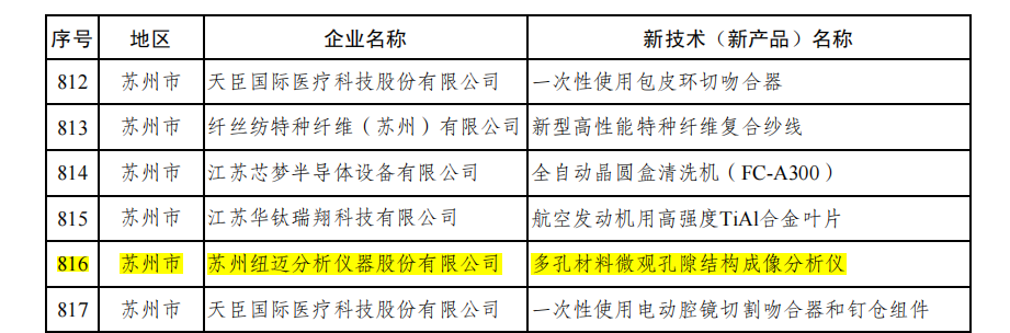近日,省工信廳印發了《江蘇省重點推廣應用的新技術新產品目錄(2024年)》。紐邁分析多孔材料微觀孔隙結構成像分析儀成功通過兩新產品評價,被列入省重點推廣應用的新技術新產品目錄。
