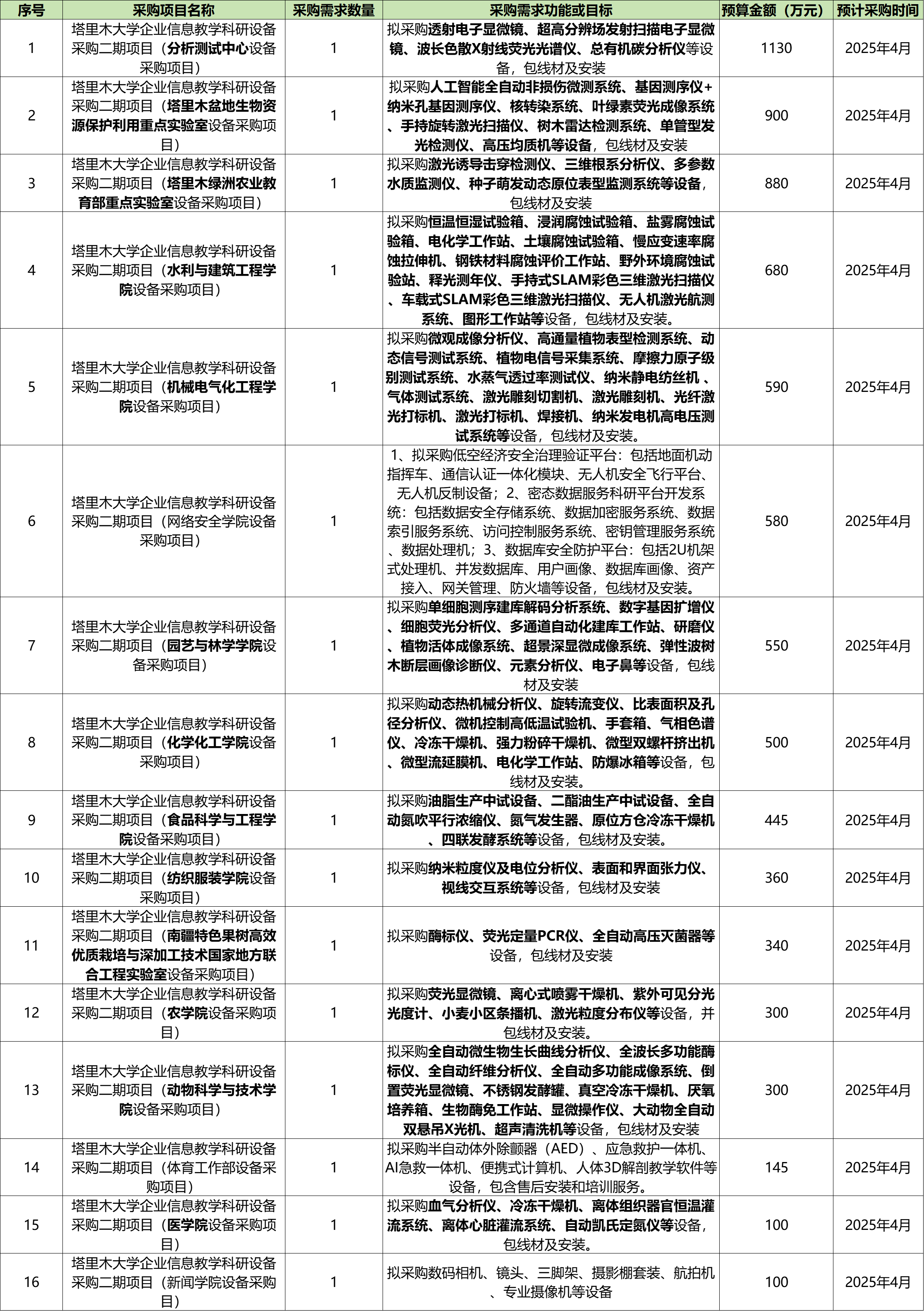 為便于供應商及時了解政府采購信息,根據(jù)《財政部關于開展政府采購意向公開工作的通知》(財庫〔2020〕10號)等有關規(guī)定,現(xiàn)將塔里木大學2025年3月第三批采購意向公開如下: