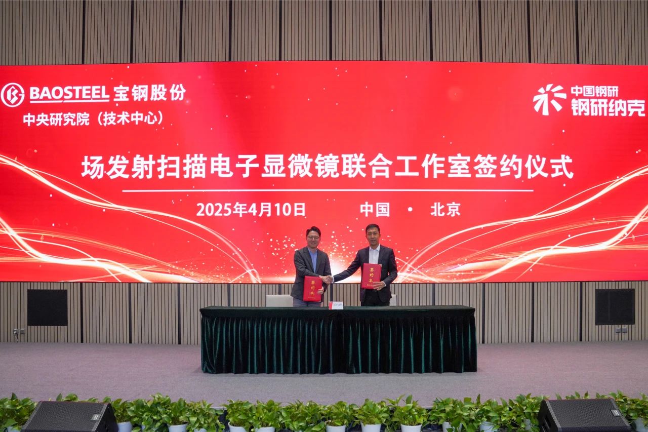 4月10日,納克微束(北京)有限公司(以下簡稱“納克微束”)與寶鋼股份中央研究院(技術(shù)中心)(以下簡稱“寶鋼中研院”)簽署掃描電鏡合作協(xié)議并舉行聯(lián)合工作室揭牌儀式,中國工程院王海舟院士,鋼研納克黨委書記、董事長楊植崗,副總經(jīng)理袁良經(jīng),總工程師沈?qū)W靜,寶鋼中研院副院長田正宏、研發(fā)保障中心主任徐棟愷,納克微束總經(jīng)理于兆斌等出席本次儀式。
