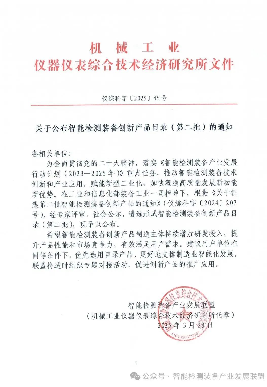 近日,在工業和信息化部裝備工業一司指導下,智能檢測裝備產業發展聯盟公示了《智能檢測裝備創新產品目錄(第二批)》。南京優倍自動化系統、優倍電氣技術公司自主開發的“儀器儀表無人化智能調試檢測裝備”成功入選該創新產品名錄。
