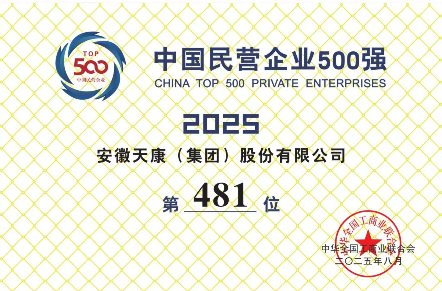 其中,中國民營企業500強發布會作為由全國工商聯主導的、規格最高、規模最大、影響最深的重要品牌活動,備受社會各界矚目。會上,“2025中國民營企業500強”及“2025中國制造業民營企業500強”榜單正式發布。安徽天康集團憑借穩健的發展實力與卓越的綜合競爭力,雙雙榮登榜單,再次展現了企業在中國制造業與民營經濟中的重要地位。