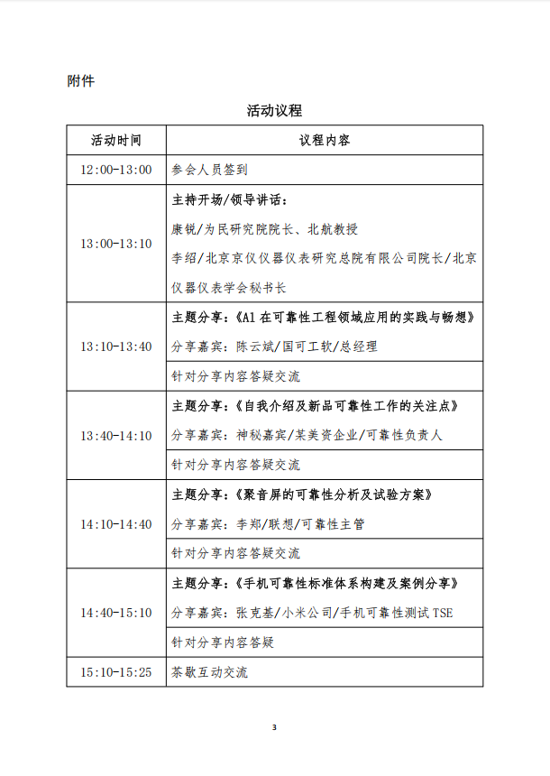 ” 公益活動的通知關于舉辦“2025 可靠性技術交流茶話會(北京站)”
