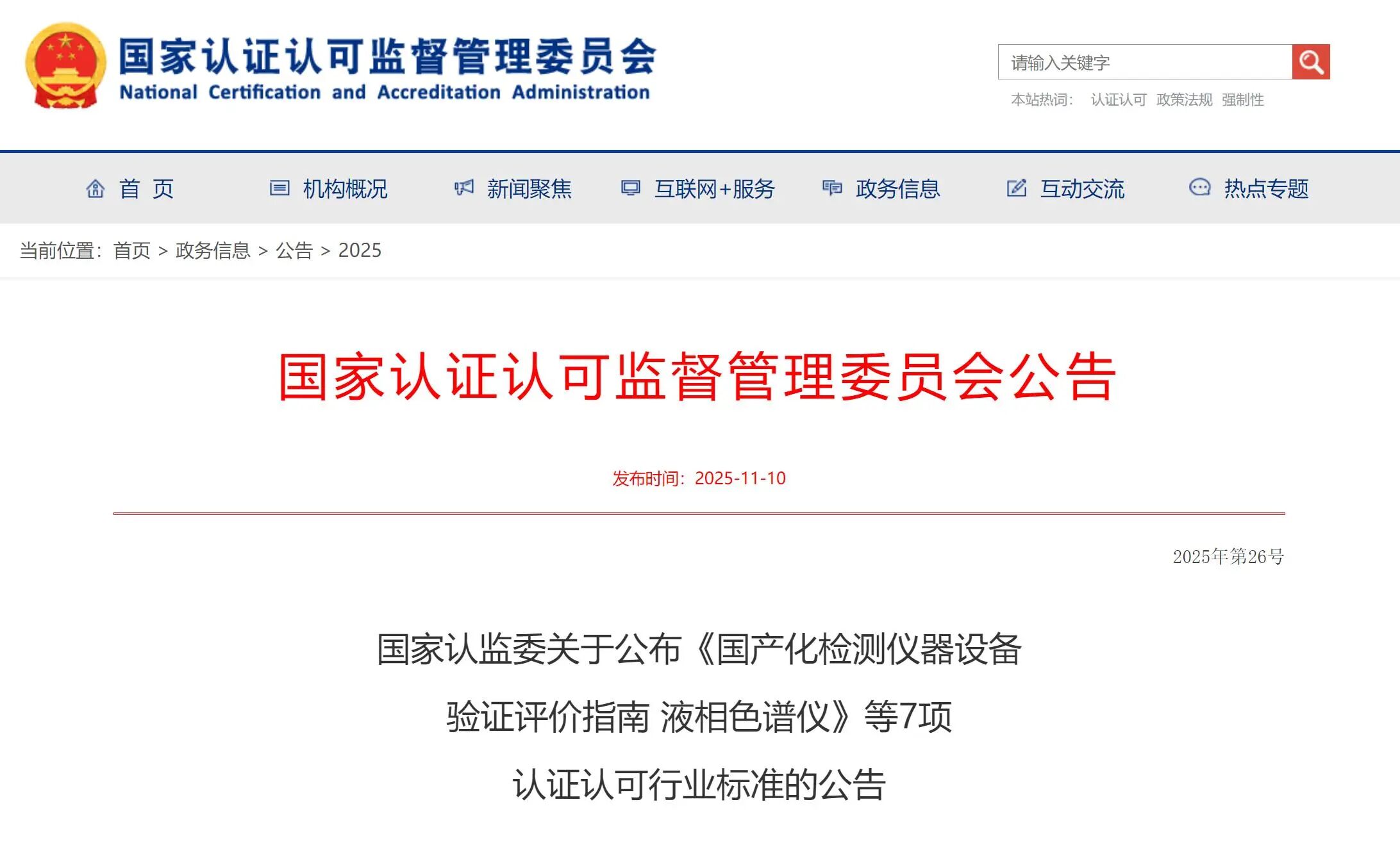 《國產(chǎn)化檢測(cè)儀器設(shè)備驗(yàn)證評(píng)價(jià)指南 液相色譜儀》等7項(xiàng)認(rèn)證認(rèn)可行業(yè)標(biāo)準(zhǔn)已經(jīng)國家認(rèn)監(jiān)委審核,現(xiàn)予公告。
