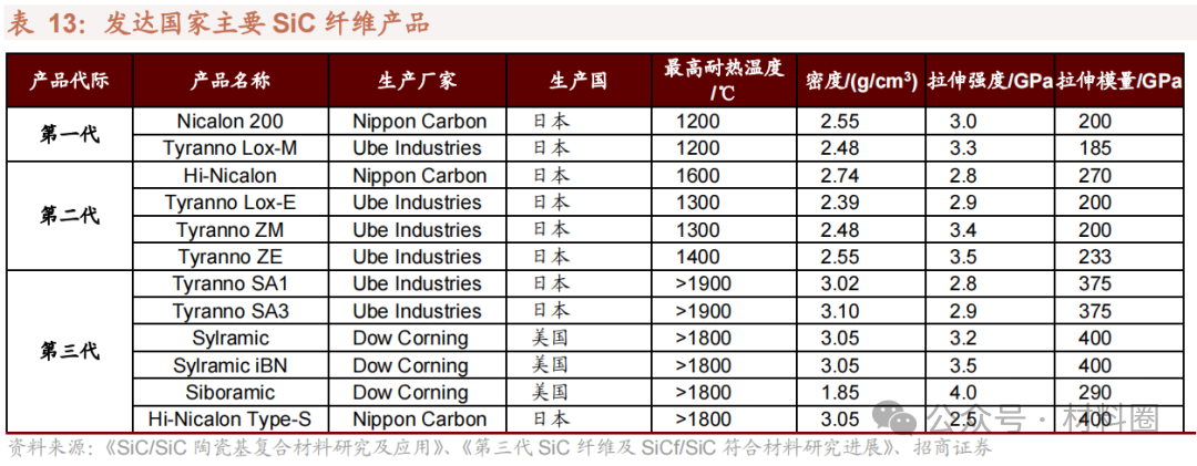 2)碳化硅纖維:在西方國家的技術封鎖下,我國第三代SiC纖維產業化仍處于起步階段