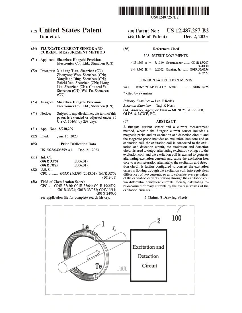 近日,深圳市航智精密電子有限公司斬獲重要國(guó)際技術(shù)認(rèn)可 —— “一種磁通門電流傳感器及電流測(cè)量方法”正式獲得美國(guó)發(fā)明專利授權(quán),標(biāo)志著航智在電流測(cè)量領(lǐng)域的核心技術(shù)實(shí)力得到美國(guó)知識(shí)產(chǎn)權(quán)體系的權(quán)威認(rèn)證。