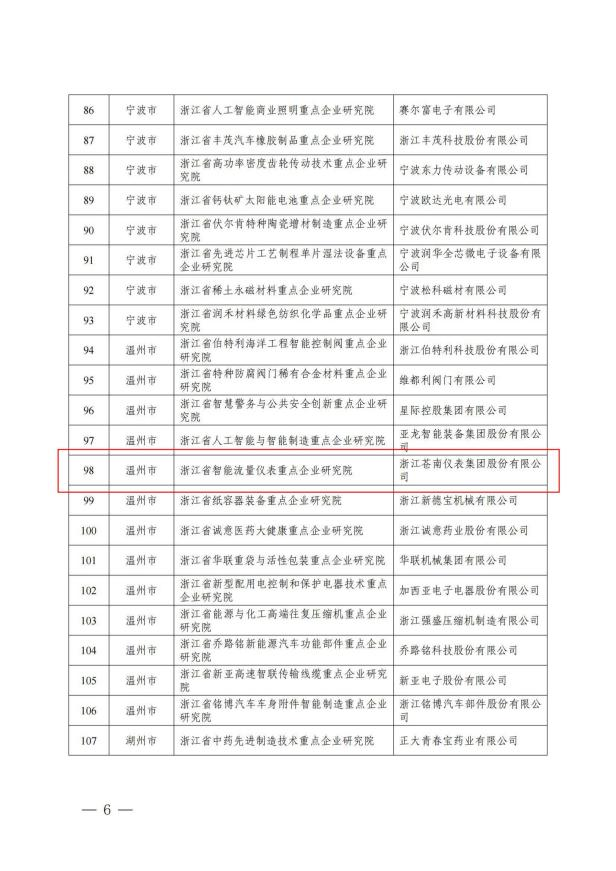 作為數十年技術引領者,蒼南儀表始終以 “計量先行,精準賦能” 為使命。此次認定的浙江省智能流量儀表重點企業研究院,將聚焦新產品、新技術、新工藝,搭建 “技術研究 - 中試轉化 - 產業化應用” 全鏈條創新平臺,促進行業不斷發展。截至目前,企業已累計斬獲專利 180 多項、軟件著作權 110 多項,主導或參與制定國家、行業、團體標準 50 多項,用實打實的技術沉淀,領跑行業發展!