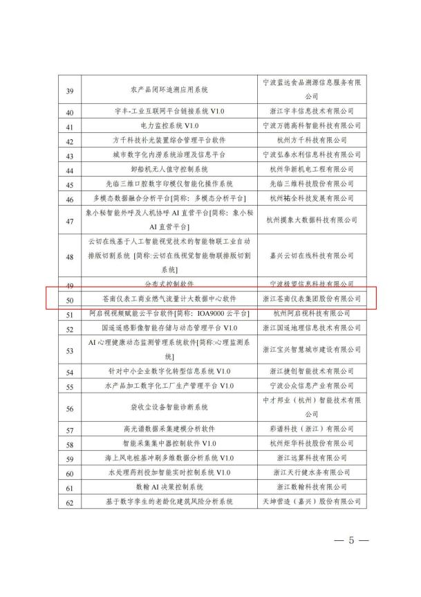 浙江省首版次軟件產品(工商業燃氣流量計大數據中心軟件 V1.0