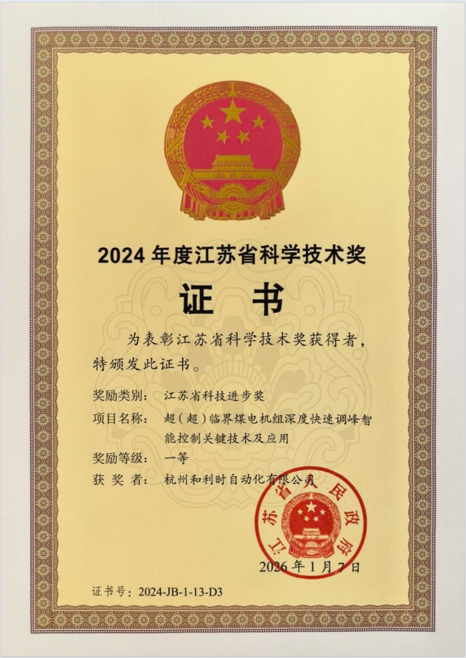 和利時煤電智能化創(chuàng)新成果獲浙江、江蘇科技進步獎?wù)J可